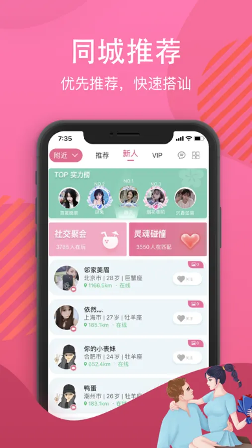 【同城推荐】优先推荐附近有缘人,快速搭讪拉进彼此的距离感