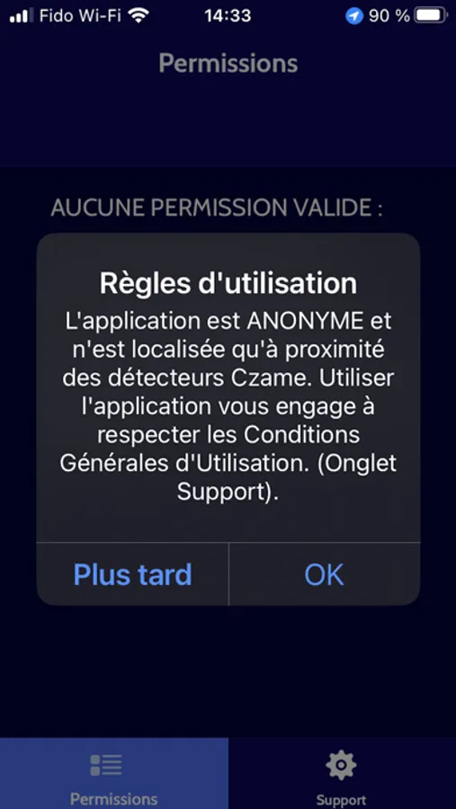 The Czame application is ANONYMOUS and without geolocation other than the detection of the Czame detector in Bluetooth.