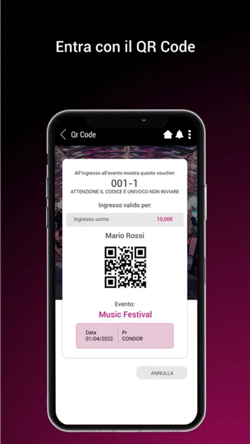All'ingresso del locale o dell'evento, scansiona il qrCode per abilitare l'accesso.