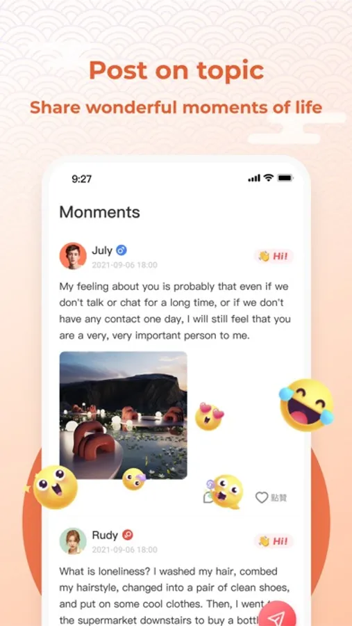 What do you want to say? Send text and photos, write content at will and express yourself easily.