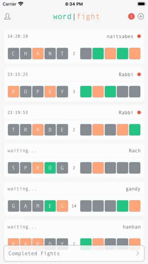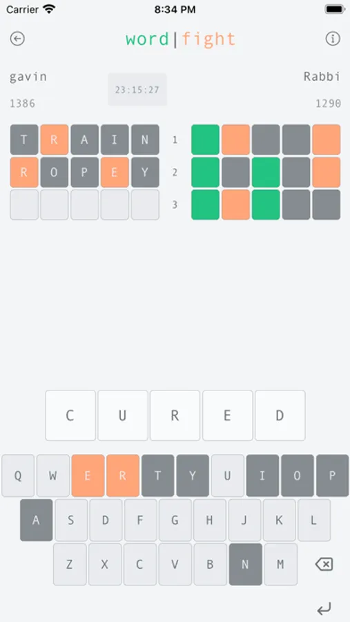 Word Fight is the two player game - where players face off to guess the same random five letter word in the least number of moves to win.