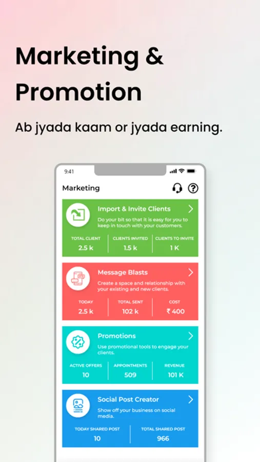 Powered by Billu Partner App, manage & grow your salon business like never before. Gain the much-deserved & desired visibility to the customers who'd love to avail of your services. We aim to not only attract great customers to you but also promote your well-equipped business. Just register & build a profile to be visible to the customers seeking services on Billu App. You can not just update & manage all aspects i.e. pricing, schedule, services, availability/non-availability, media(images/videos), but also ensure your promotional activities with super convenience. A world of opportunities awaits you!