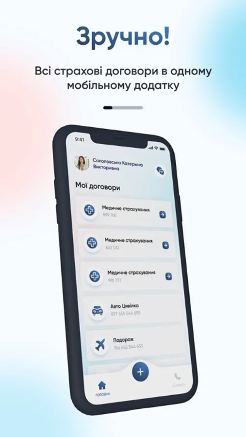 Він дозволяє здійснювати безперешкодний доступ до своїх страхових договорів, має функцію легкого запису до лікаря у разі настання страхового випадку, у зручний для вас день та час, функцію онлайн заявки на відшкодування збитків, а також містить контакти цілодобового медичного асистенту та екстреного виклику швидкої допомоги. Вся необхідна інформація відтепер знаходиться у вашому смартфоні, що дозволяє не носити з собою пластикову картку полісу страхування. Треба лише завантажити додаток та авторизуватись за допомогою номеру мобільного телефону, що був вказаний при страхуванні.
