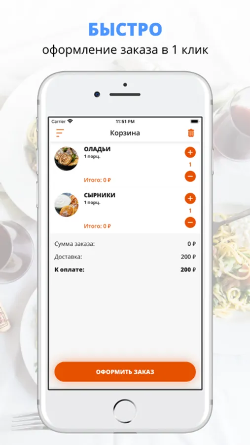 Скачивайте наше приложение, оформляйте заказ и наслаждайтесь любимой едой, где бы Вы ни были! Приятного аппетита!