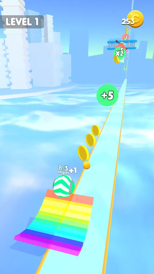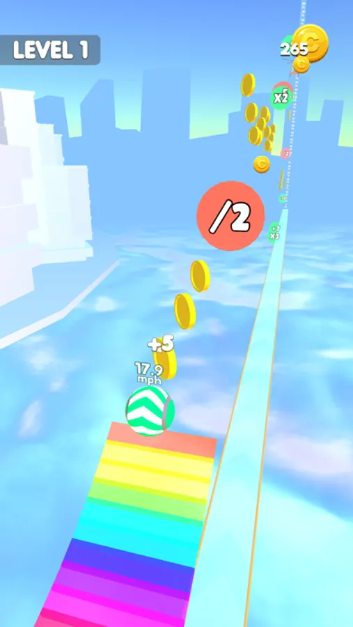 Control your ball in order to collect the speed power ups and try to reach to the top.