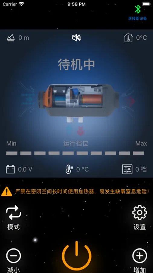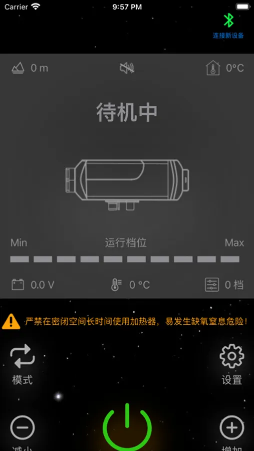 通过手机蓝牙连接驻加热器,可实现双向控制及运行状态指示