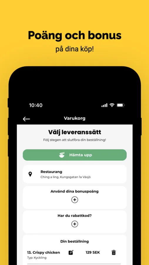 • Beställ och betala direkt i appen