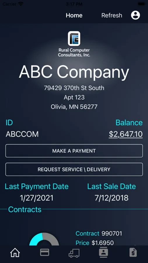 Information at your fingertips! This app gives you direct access to your account balance, location and contract information. It also gives you the ability to store and process payment and request service work and deliveries directly through the app.