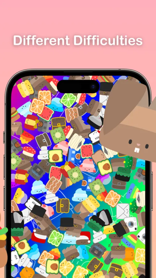 At the beginning of the game you see a card which Ploppy is wanted. After pressing play, the Ploppies on the board get mixed up all over the place. Then you have to start searching - sometimes, you will find them quite easily, sometimes you have to look more closely and sometimes you maybe even have to first pop some of the overlaying Ploppies by touching them. In the menu you can randomize the wanted Ploppy as often as you want.