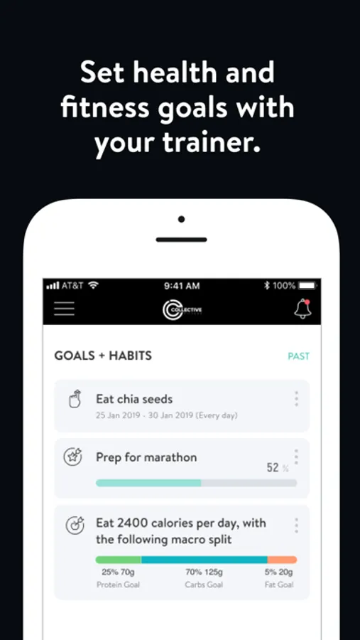 With the Collective Fitness App, you can start tracking your workouts and meals, measuring results, and achieving your fitness goals, all with the help of your personal trainer.