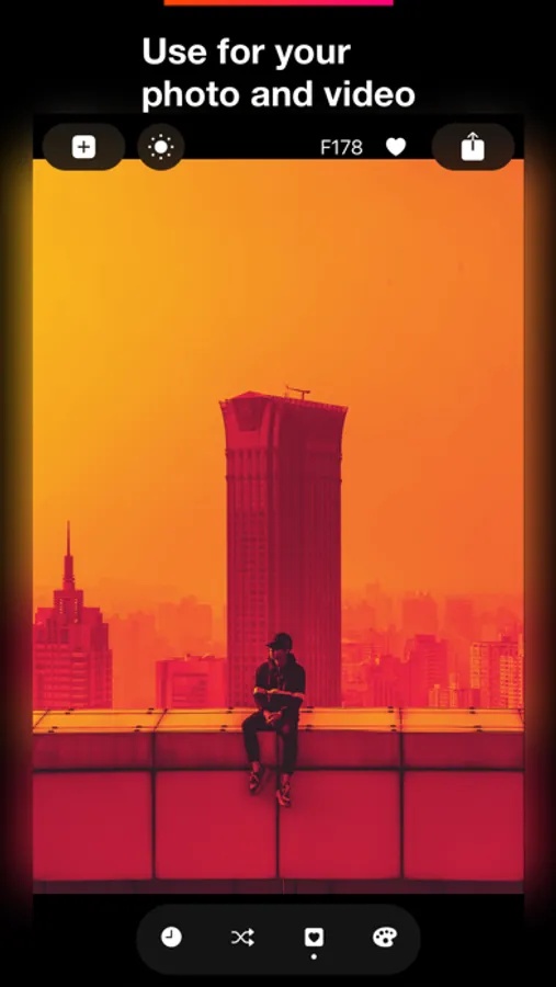 Use for photos and videos. Easily process high-quality media content. With a premium subscription, you can export your video masterpieces in their original format, up to 4K resolution. Apply duotone effect to make your video unique and create a retro graphic design. Immerse yourself in a dark atmosphere, like a dark room, with colored lights. Great for night shots.