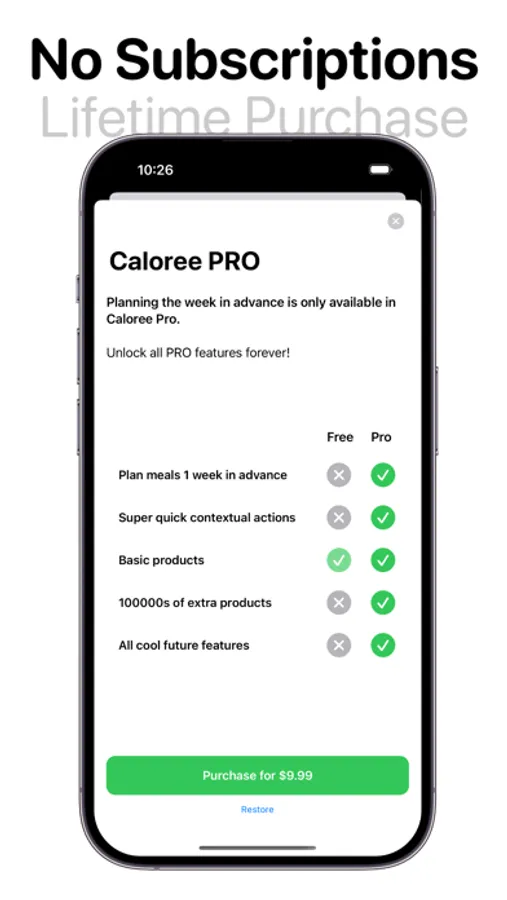 Some of the features mentioned above require Caloree PRO which is a one-time in-app purchase. Consider supporting us by giving Caloree PRO a try.