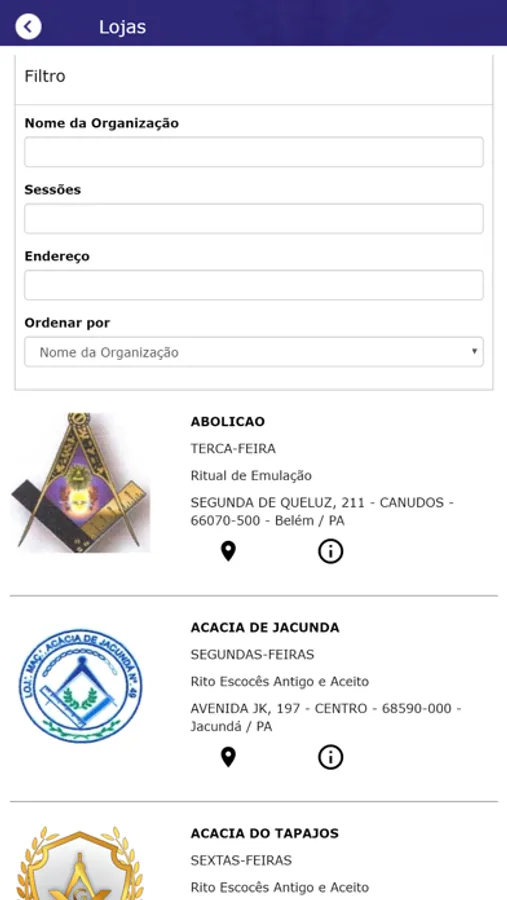 2) Através do menu "Lojas" o usuário terá acesso a uma lista com todas as lojas jurisdicionadas a "GLEPA".