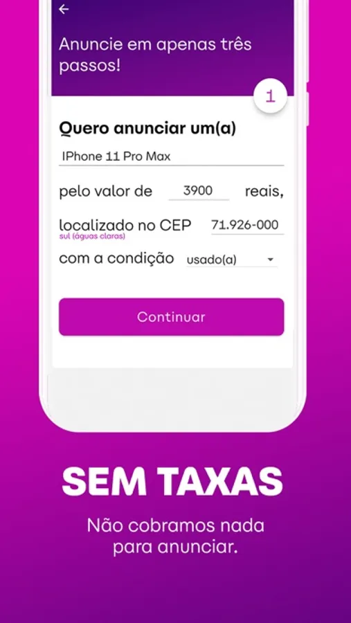 Não cobramos nenhuma taxa para você comprar ou vender. O anúncio é totalmente grátis.