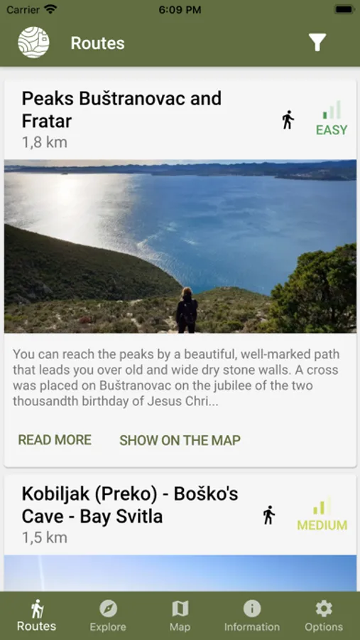 Use the app to explore the routes ranging from easy walking routes to difficult and fast bike trails.