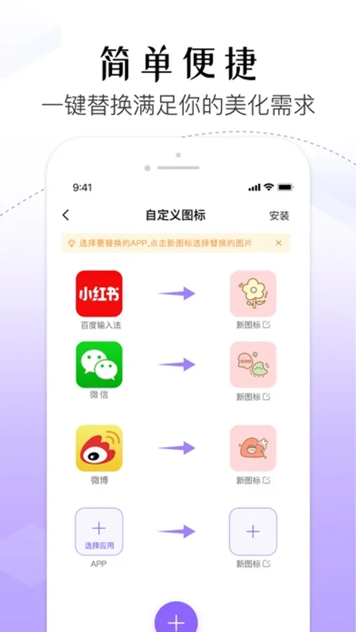 换图标拥有丰富的主题图标库,还可以自定义图标,一键轻松创建图标快捷方式。