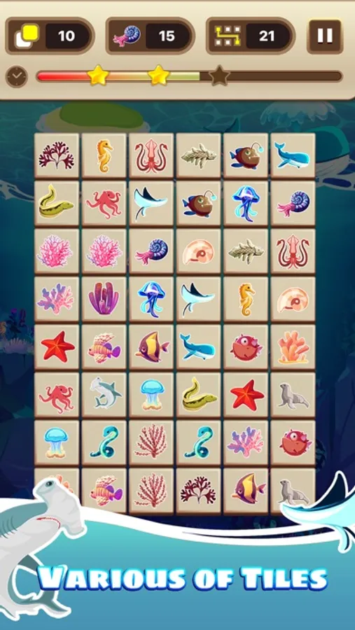 - Easy to play: Clear the tiles board by connecting all the same tiles together.