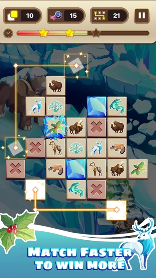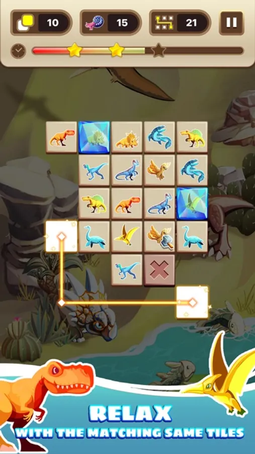 Connect 2 same tiles to clear them. Clear all the tiles in a limited time to win the level. Try to pass the level faster and faster to improve your brain and memory every day. Become the tile match master by practicing hard! Time Connect has many themes to unlock through out the History of the Earth: Undersea, Jurassic World with the Dinosaur, Ice-Age, Tropical Forest, Cavemen, and so many more! Join the game and find your favorite stage of the Evolution!
