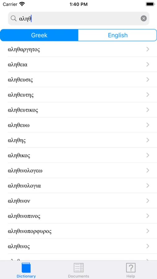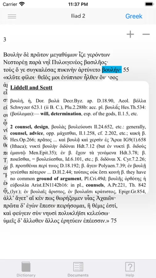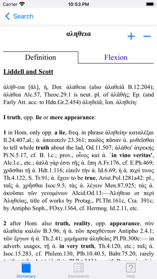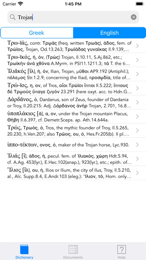 The complete Greek-English Lexicon by Henry George Liddell and Robert Scott (more than 116 000 entries).