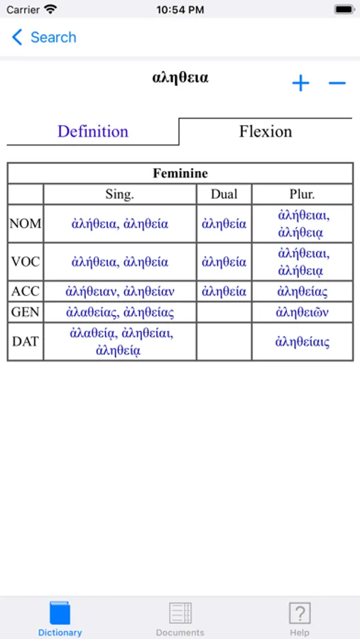 Document reader which allows to analyze inflected forms in the body of the text, and to search the corresponding entry in the database.
