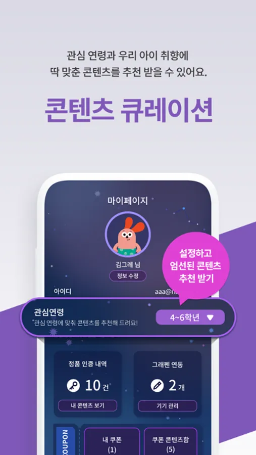 - 마이페이지> 관심연령 설정으로 우리 아이 연령과 취향에 딱 맞춘 콘텐츠를 추천 받을 수 있어요.
