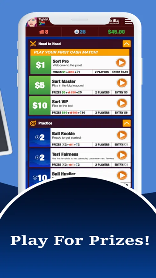 Challenge people around the world with SKILLZ™, a competition platform complete with leaderboards, trophies, cash or virtual currency prizes, and an amazing loyalty program that rewards you just for playing! SKILLZ™: eSports for Everyone.