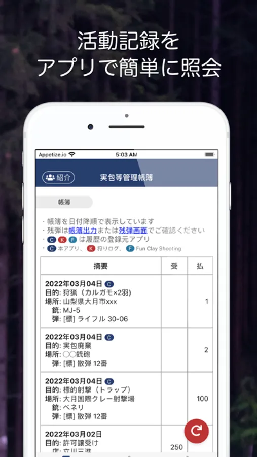 アプリ上で簡単に実包の消費履歴などを閲覧可能!