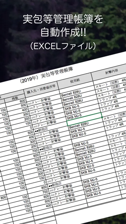 射撃・狩猟等の記録するだけでExcel版「実包等管理帳簿」が自動作成されます!