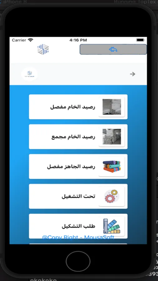 تطبيق خاص بمصنع توب تكس للصباغه .