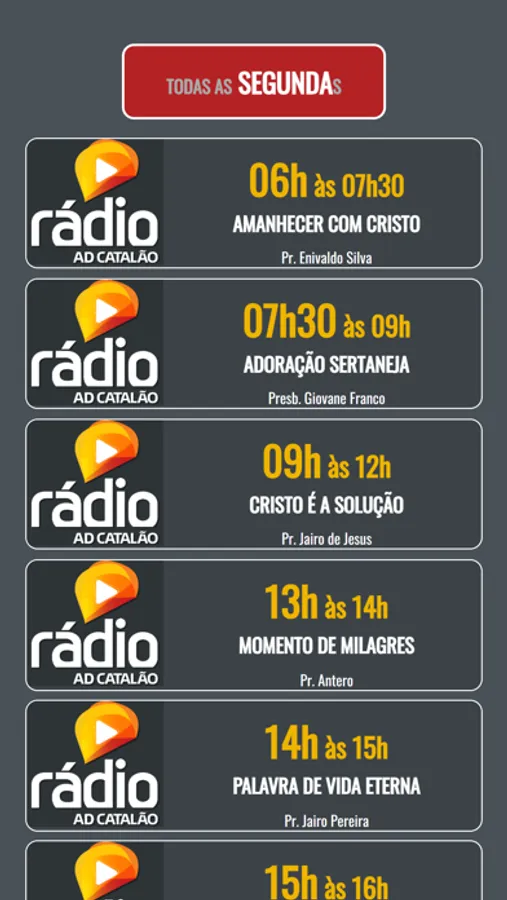 Tenha a rádio da Assembleia de Deus Catalão Ministério Madureira. Compartilhe, envie mensagens via whatsapp e veja a programação atual.