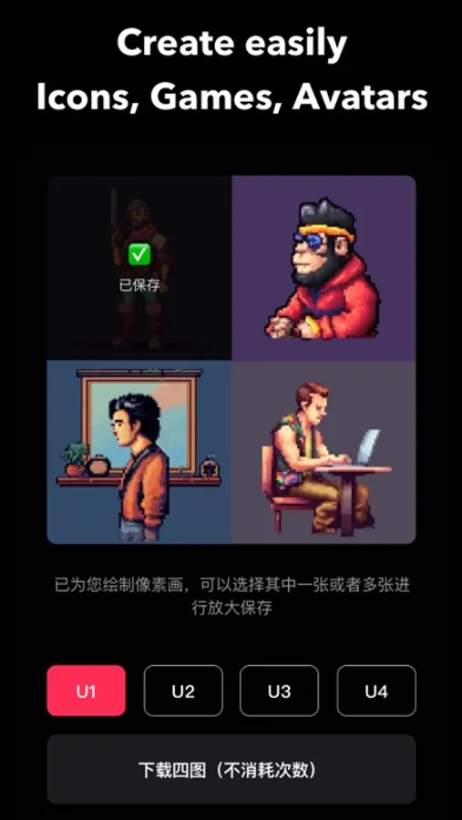 You can create pixel avatars to save and share to your circle of friends and social media.