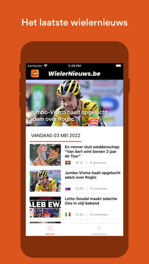 Met de app van WielerNieuws.be zie je met één klik een overzicht van het laatste wielernieuws en ontvang je pushmelding bij breaking news.