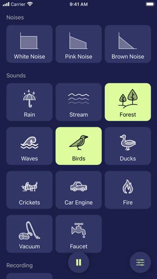 But I found white noise to be a bit too aggresive so I studied other types of "colored" noises. Found the "pink" noise which sounds a lot more "natural". And I started adding more sounds and noises to the app.