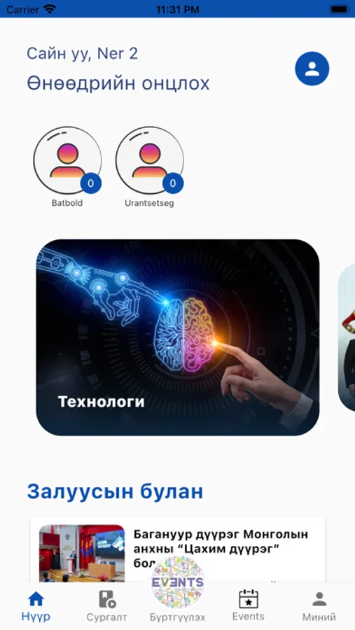Монголын залуучуудын холбооны үйл ажиллагаа, эвент