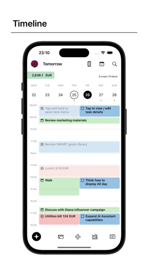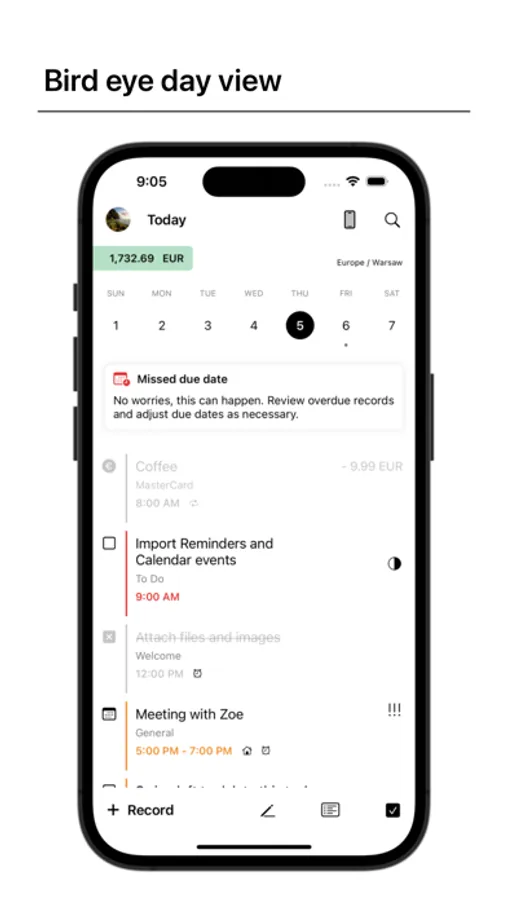Next is a unique product which combines concepts of general planing and organisation, such as calendars and to do lists, with personal finance management. Our approach is that managing or planning a task or an event, is not anyhow different from managing a payment. All of that have a due date and require planning and an action.