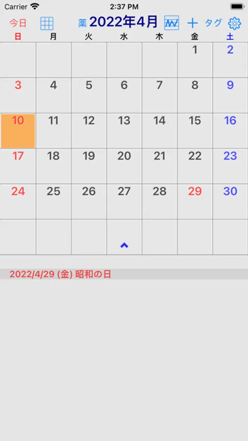 記録した情報は1日単位時系列で表示する事ができます。カレンダー画面で上下左右にスワイプする事で、年や月の移動が行えます。