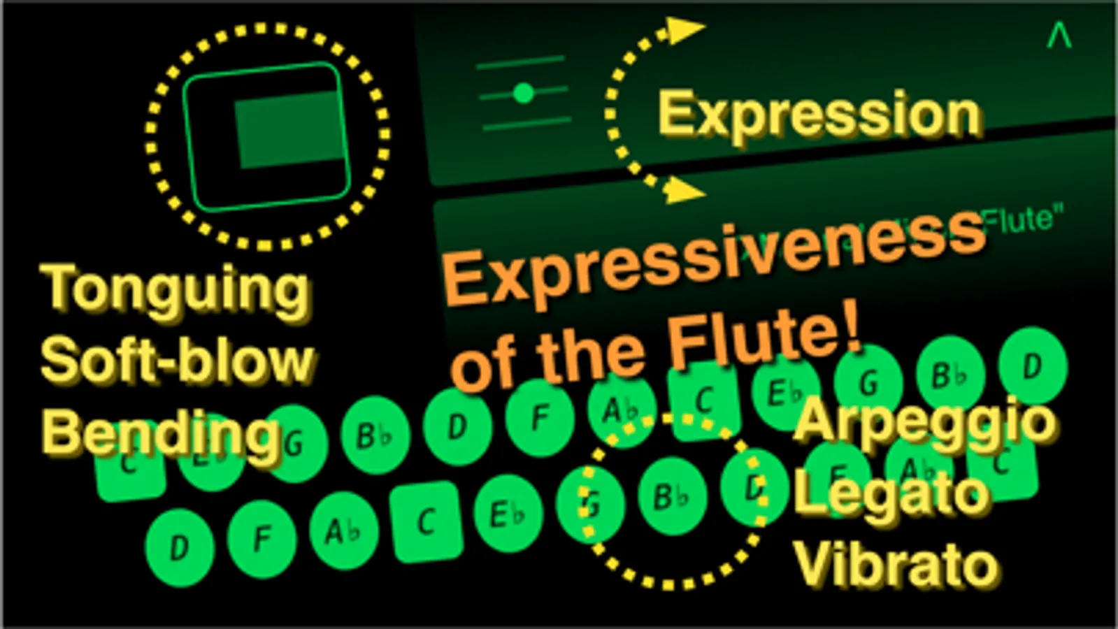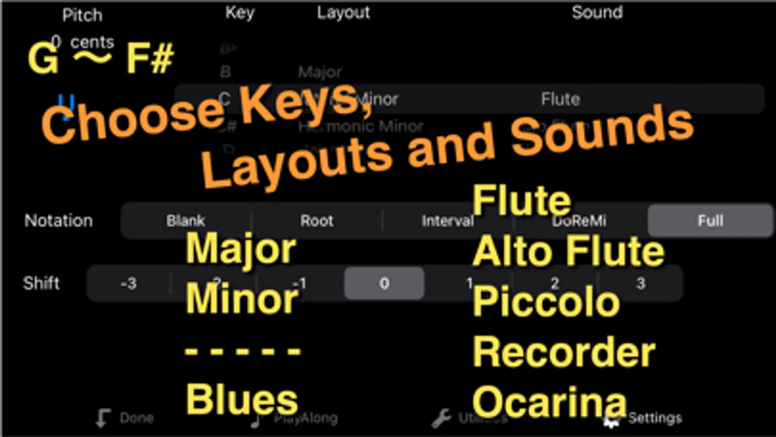 - Built-in sounds: flute, alto flute, piccolo, recorder and ocarina.