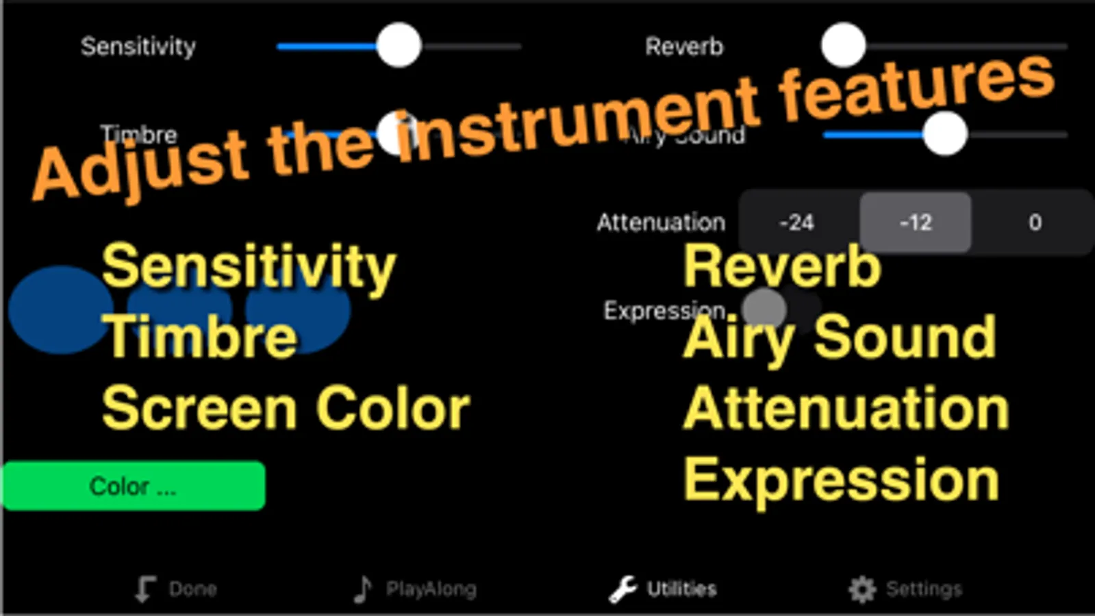 - You can apply tremolo (volume vibrato) with your finger touching the sound button.