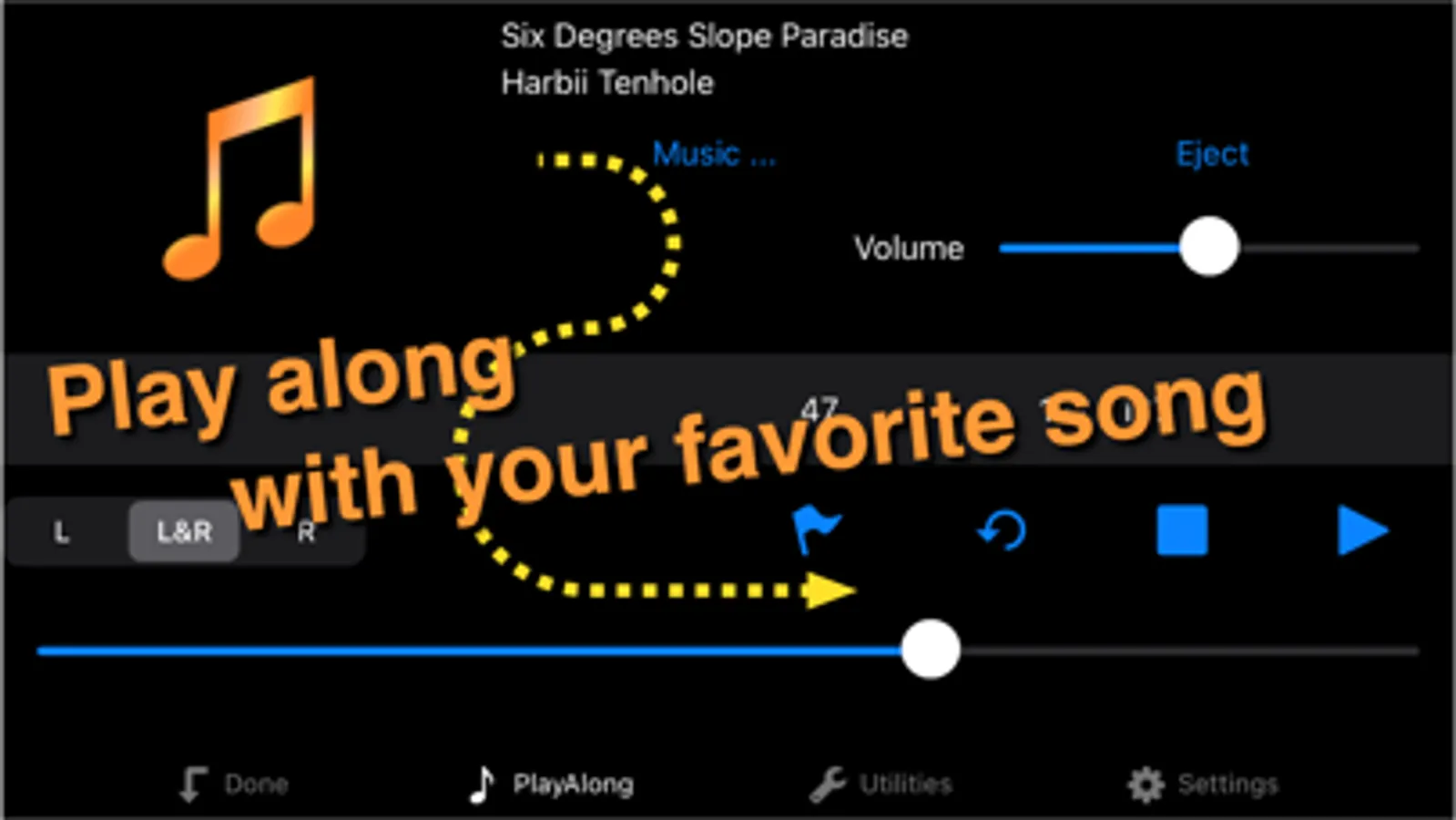 - Play along with songs in your iPod library with the built-in play along player.