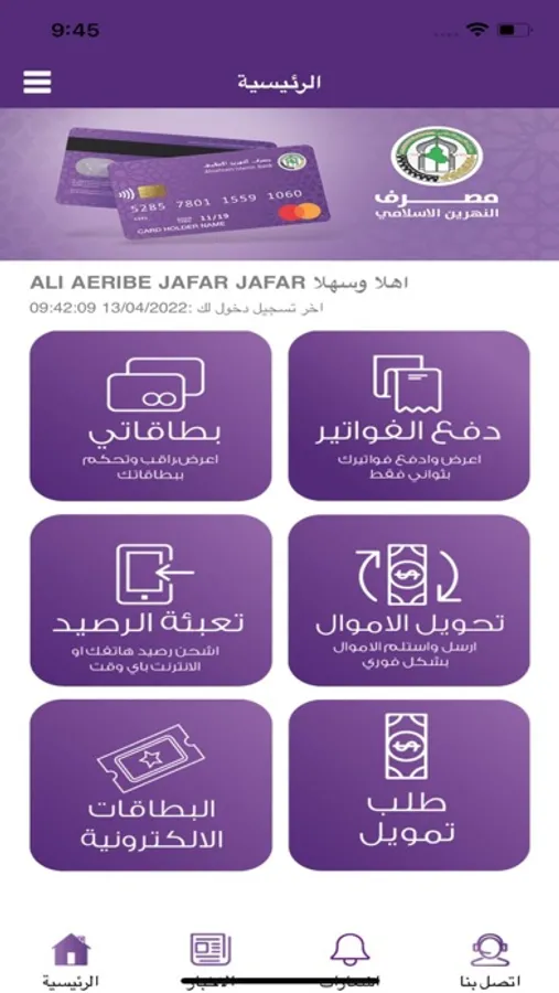 - اعرض بطاقاتك ورصيد حسابك في أي وقت