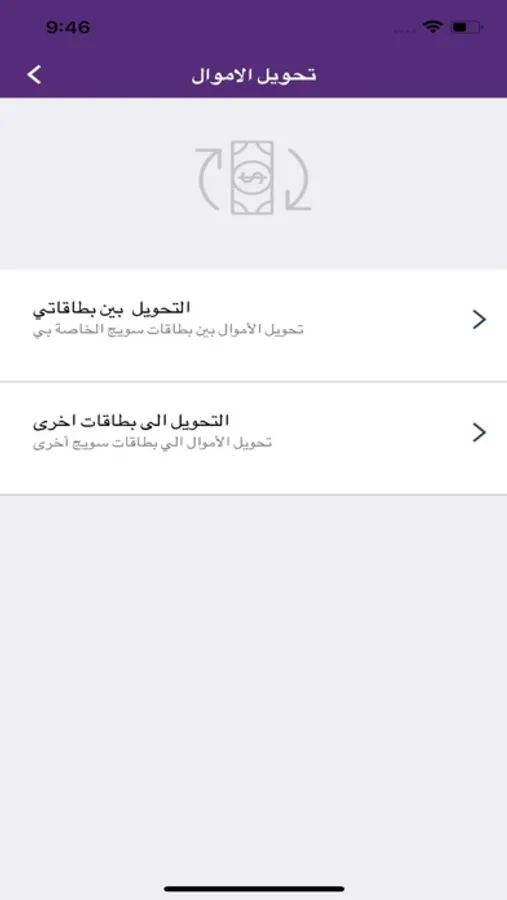 - حول الاموال بين بطاقاتك او الى بطاقات اخرى