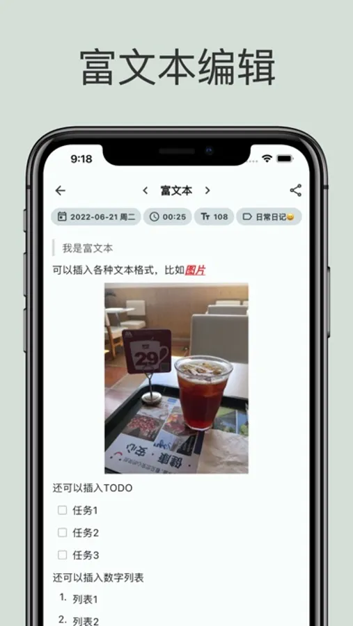 "Multiple diary types" We provide three diary formats: simple text, rich text, and Markdown for everyone to use
