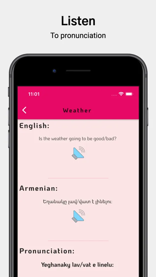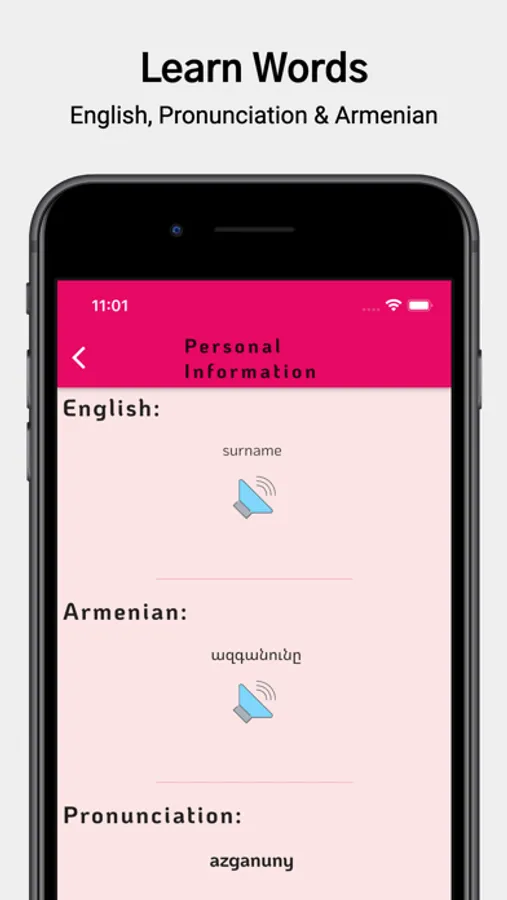 • In every lesson, you can listen to the Armenian word pronunciation as well as see Armenian word in english language.
