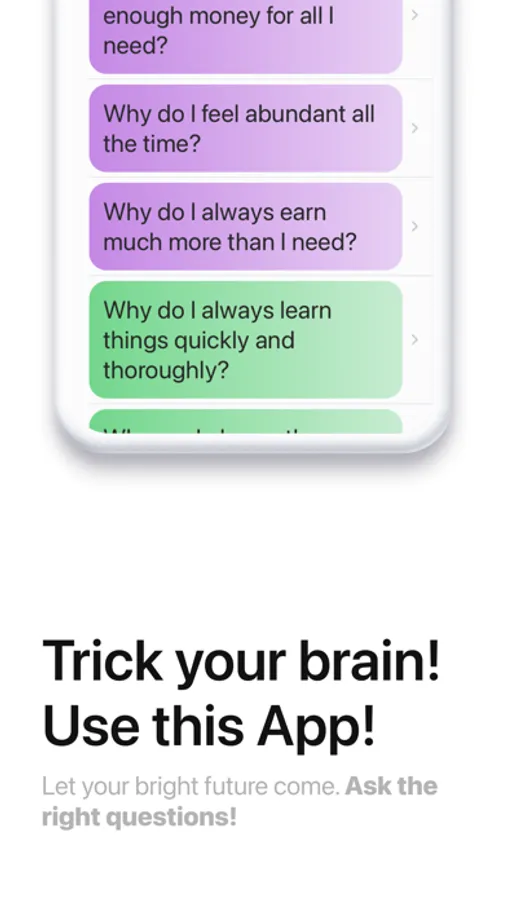- Starting this app each day and asking lofty questions will form a habit of pushing yourself in the right direction.