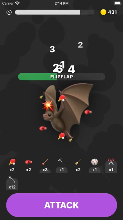 Tap to defeat the emojis and beat the clock! Spend coins earned to power up, clear levels faster, and unlock more content.