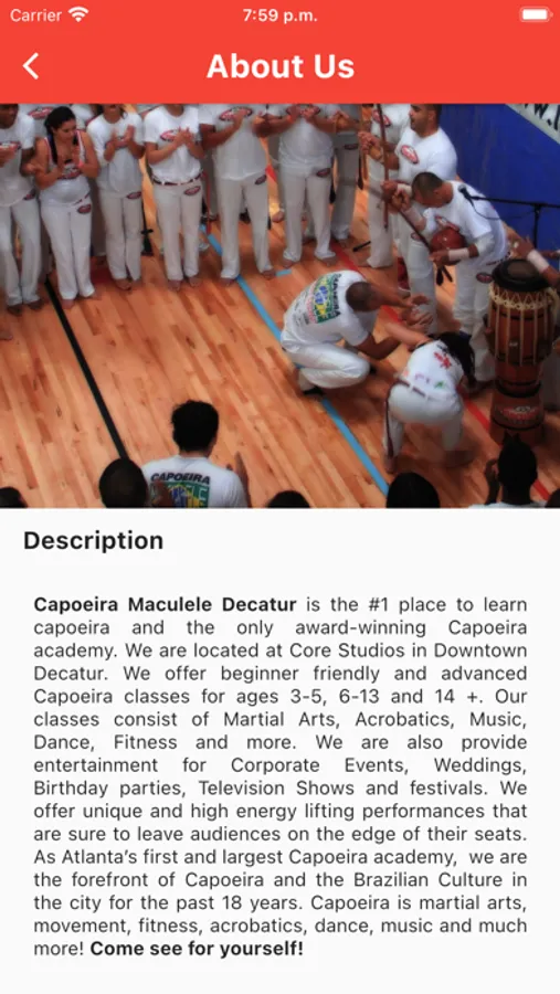 Welcome to the official APP of Capoeira Maculelê Decatur Brazilian Art Center.