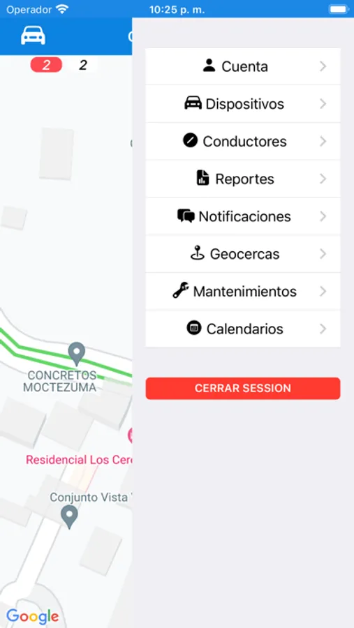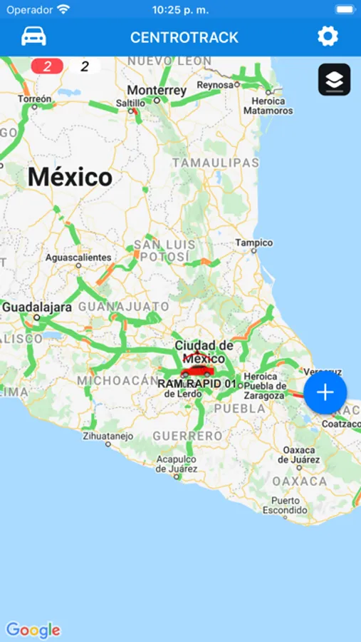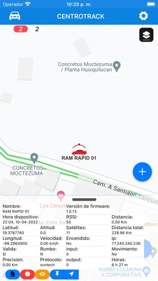 Aplicación CENTROTRACK para rastreo satelital.