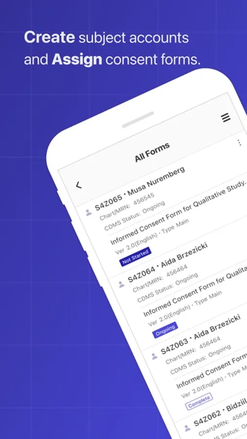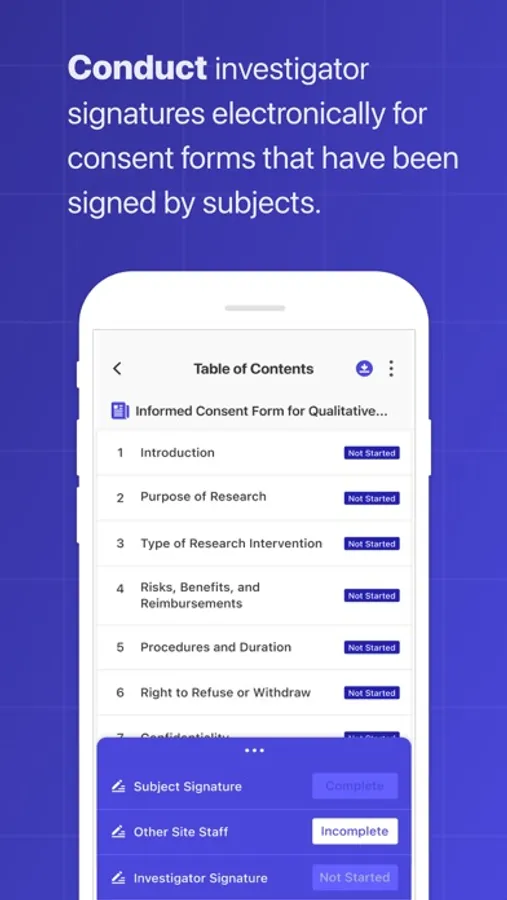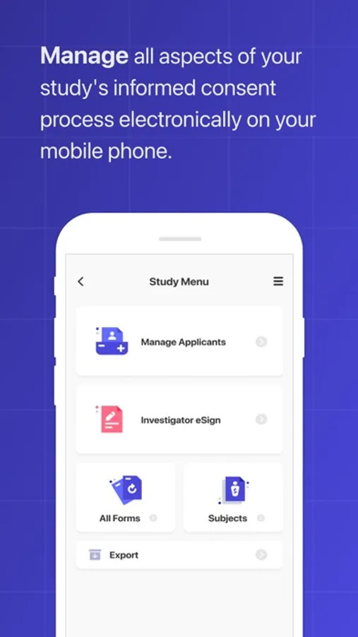 - Manage all aspects of your study's informed consent process electronically on your mobile phone.