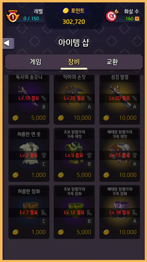 1. 무기 및 아이템 업그레이드를 통해 더욱 높은 던전과 몬스터에 도전하세요!