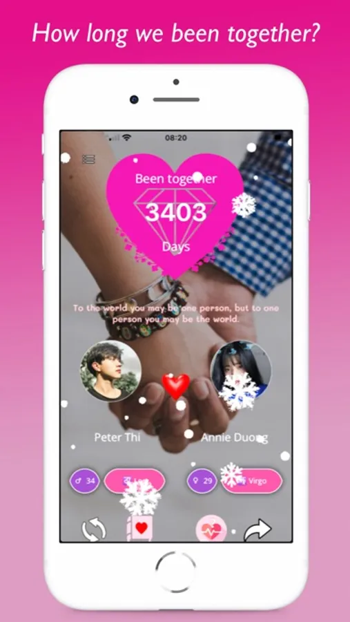 Long distance relationship will help you know how many days you been together, you can also save love memory in your own style with many beautiful decorations & effects. Helps you two feel closer to each other, especially long distance relationship couples.